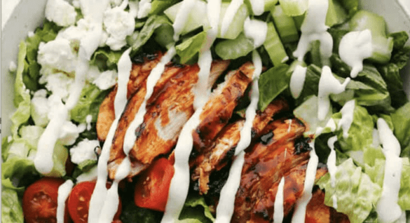 This buffalo chicken salad is packed with fresh vegetables, feta cheese, and the perfect buffalo chicken. Layer this with some homemade dressing, and you’ll have your new go-to salad recipe!