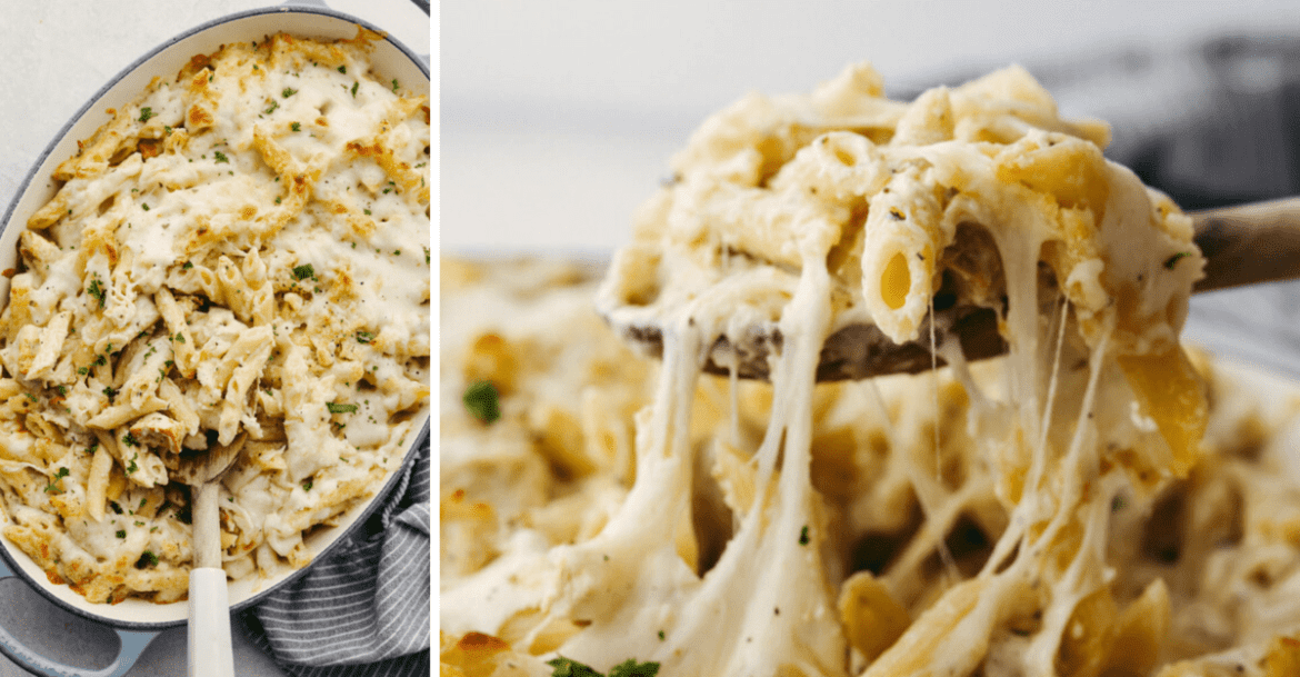 This baked chicken alfredo pasta is classic and insanely delicious. Packed with Italian seasoning, shredded chicken, and penne pasta, this entree will become a family favorite!