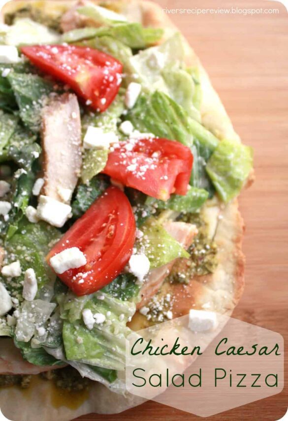 I love Caesar Salads. They are my salad of choice whenever we go to a restaurant. They serve this pizza at the Mellow Mushroom. Sorry Utahn’s, there isn’t one here! But the Mellow Mushroom is amazing! The homemade pizza crust to this pizza is so yummy. I honestly thought it was from a restaurant or something. And the best part is that it turned out! I have made so many homemade pizza doughs that don’t quite turn out! We had a fun family night making these pizza together. My boys put pizza sauce and cheese of course on top, and I had this delicious caesar salad on mine. I especially loved the pesto that was on this pizza. This pizza was a huge hit and I loved that it is a lot healthier for you too!