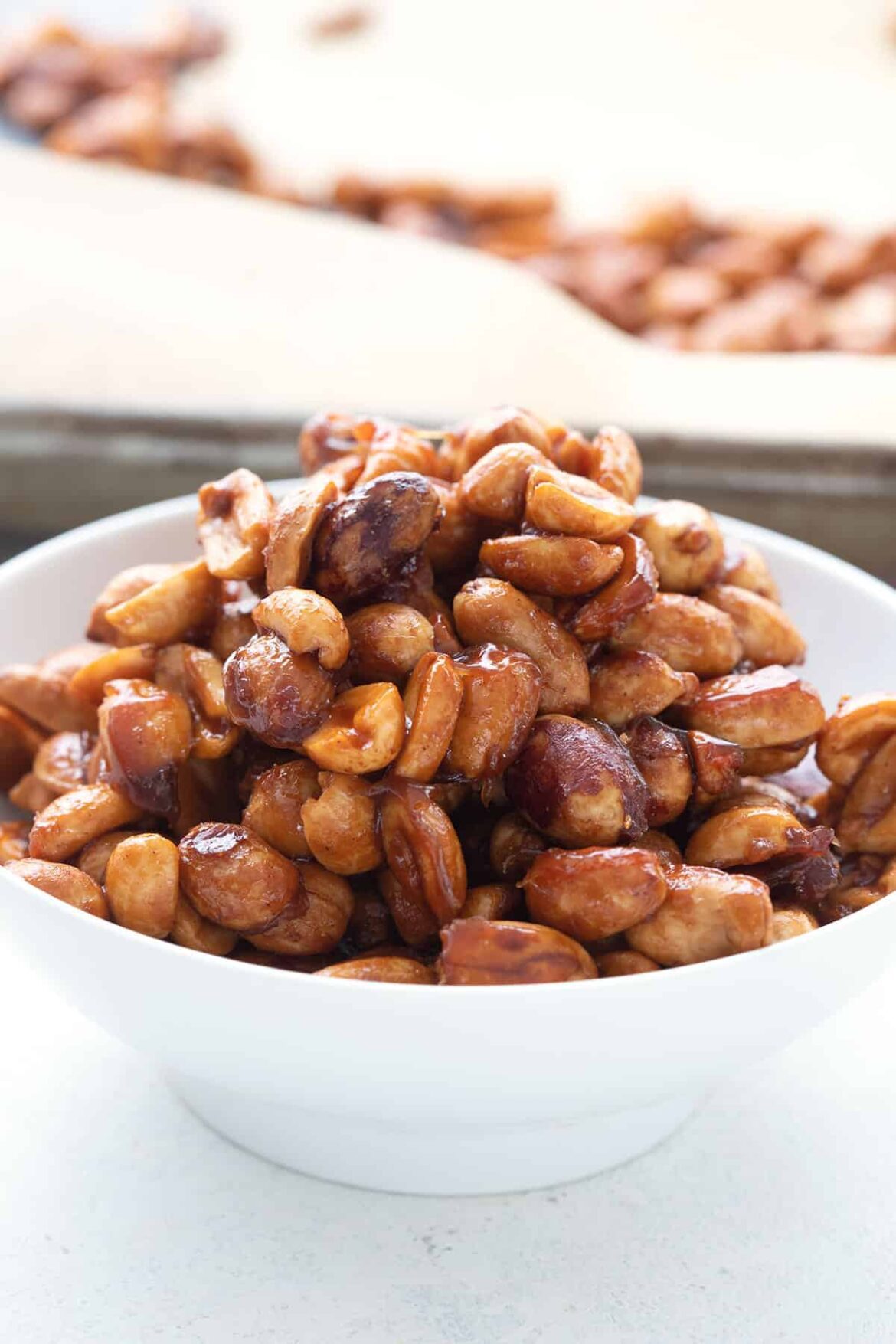 Look no further than easy keto toffee peanuts. They are a wonderful addition to your holiday lineup. They also make great game day snacks.