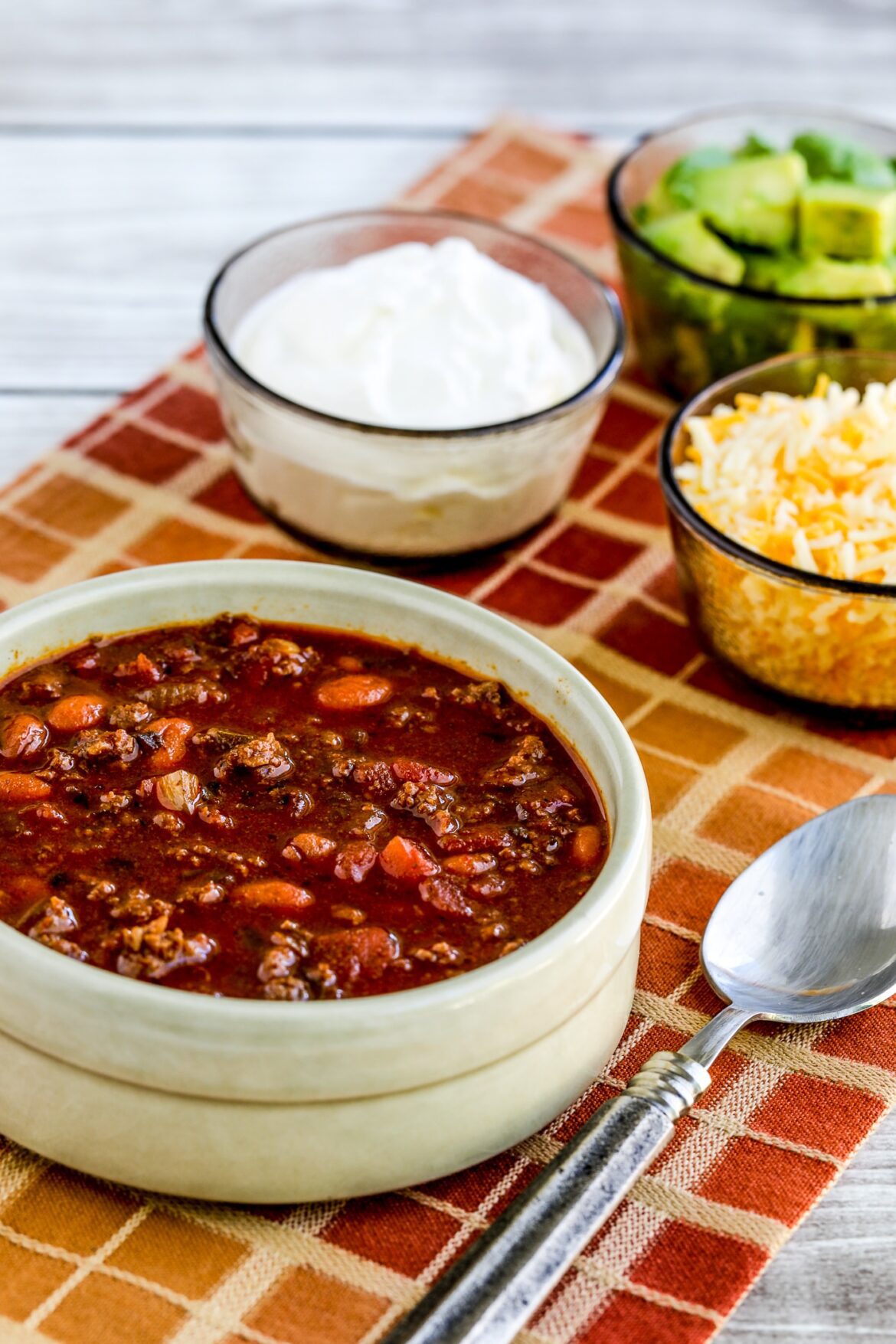 - Serve hot, with things like cheese, sour cream, and diced avocado to add at the table. Corn chips are good in this if you’re serving it to kids!