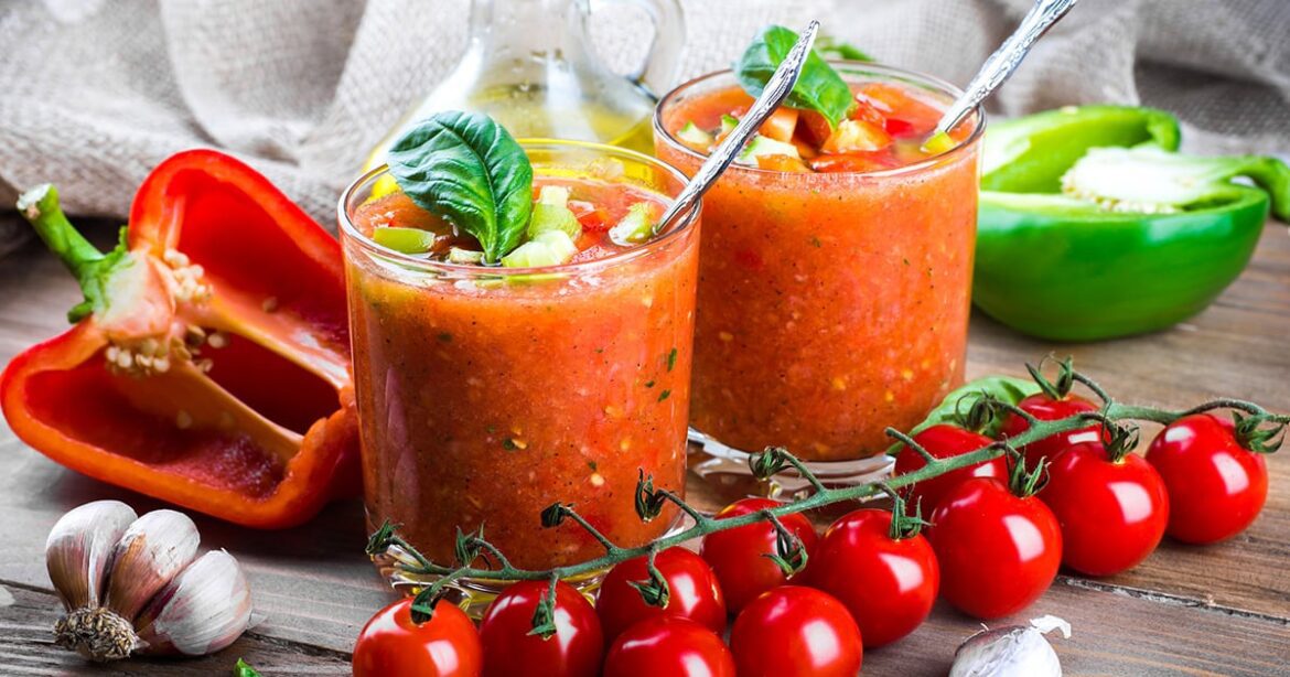This scrumptious tomato gazpacho soup is simple to arrange utilizing a blender or a meals processor. It’s made with different veggies and lashings of heart-healthy olive oil. It’s made with out bread and is gluten-free and vegan-friendly.