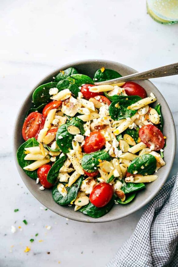 Hey everyone! It’s Chelsea from Chelsea’s Messy Apron. I’m bringing a healthier spinach and chicken salad with pasta today and I hope you all love it!