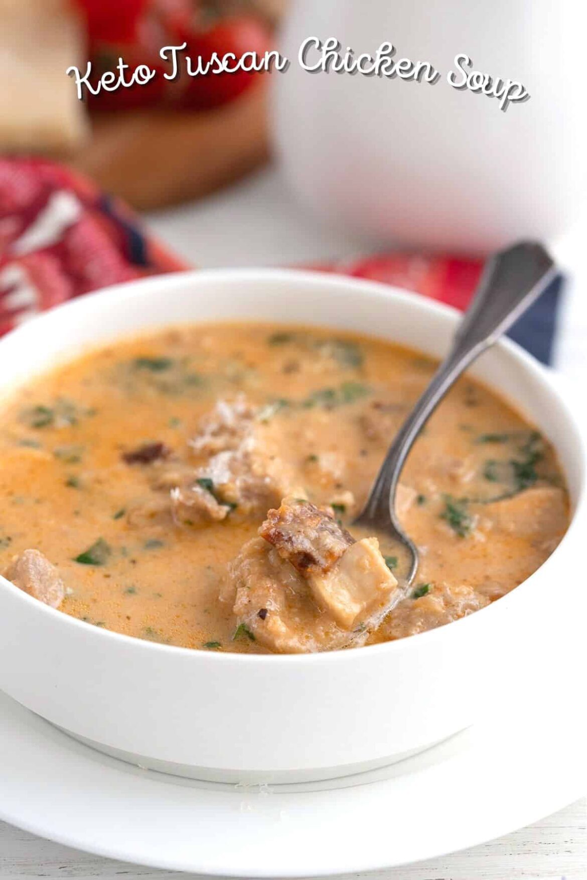 Creamy Tuscan Rooster Soup is wealthy and satisfying, and packed stuffed with healthful elements. It’s a keto consolation meals meal the entire household will get pleasure from. Solely 4.9g internet carbs per serving!