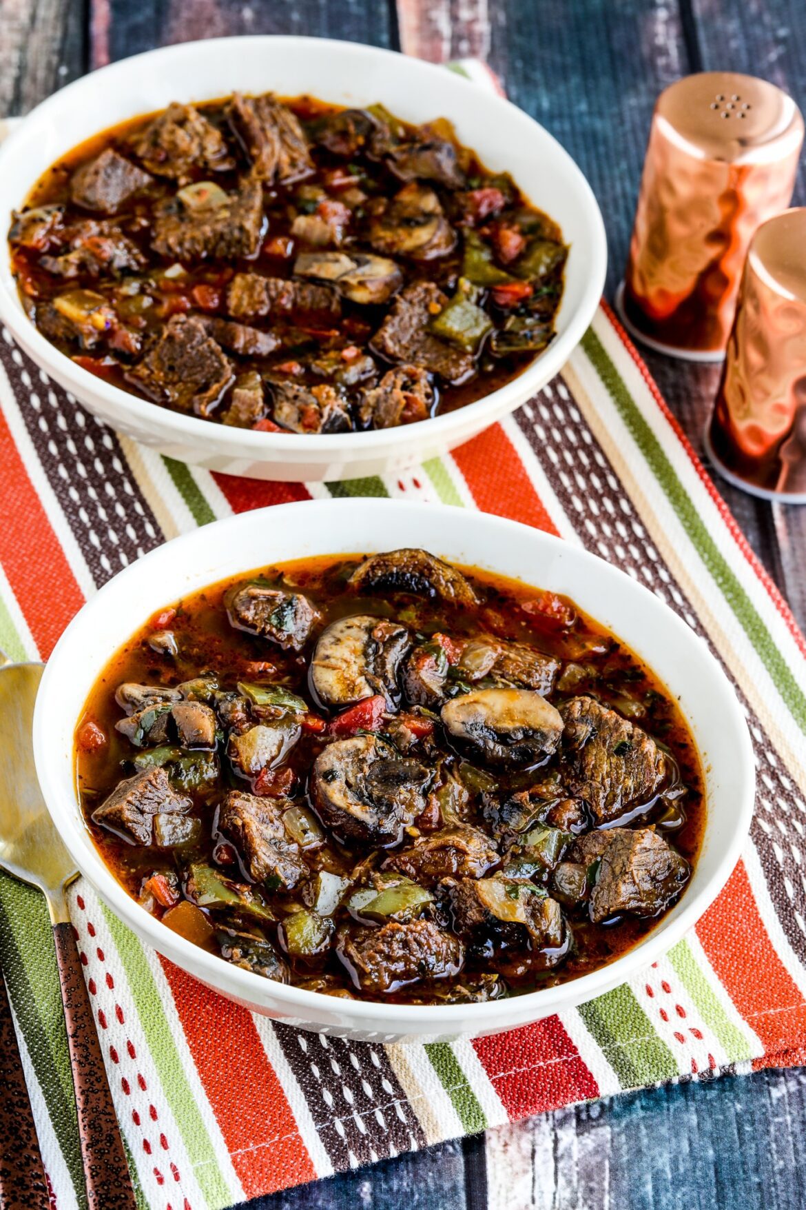 In case you have an entire pound of leftover roast beef, I urge you to make use of the total quantity (or much more). However should you don’t have a full pound of beef cubes you possibly can nonetheless make a tasty stew. You possibly can use extra inexperienced pepper or extra mushrooms, or add zucchini, add purple bell pepper, add artichoke hearts, or add one other vegetable you take pleasure in in stew. You possibly can additionally add some bacon or sausage to the stew.