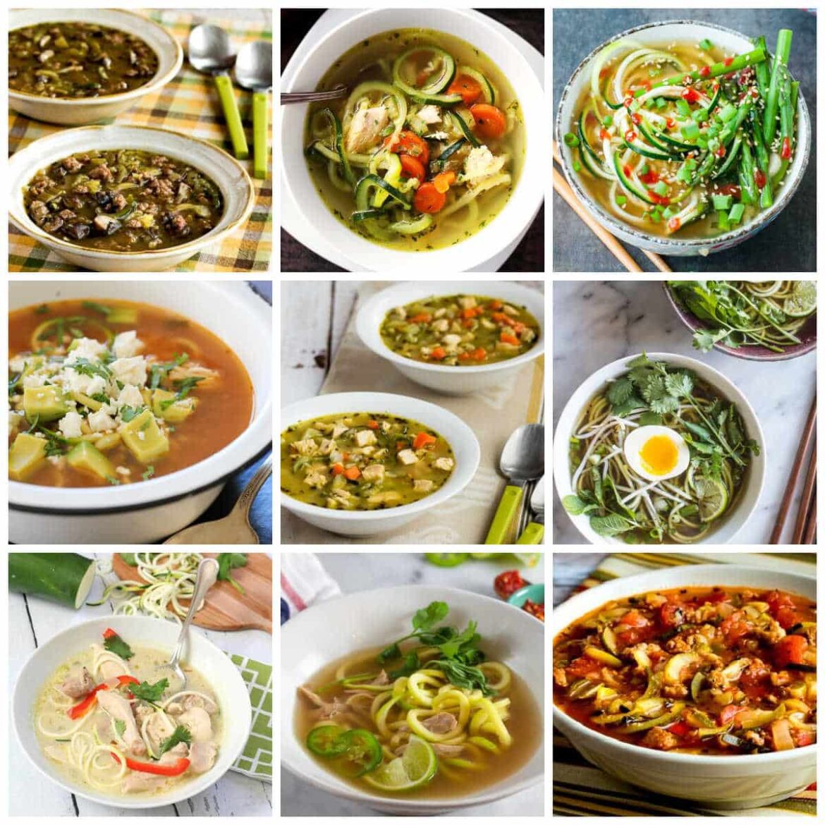 This round-up has zucchini noodle soup recipes with turkey, chicken, ground turkey, and Italian sausage, as well as several soups that are vegetarian or vegan. And there are a wide variety of other interesting flavor-enhancing ingredients used in these tasty soups.