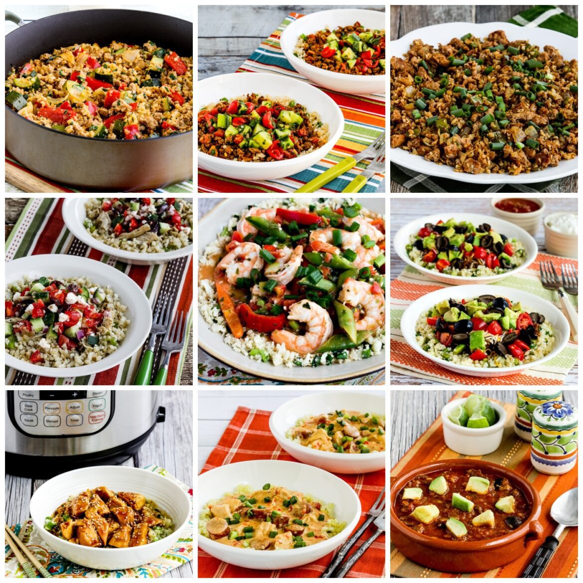 Low-Carb Dinners with Frozen Cauliflower Rice collage of featured recipes