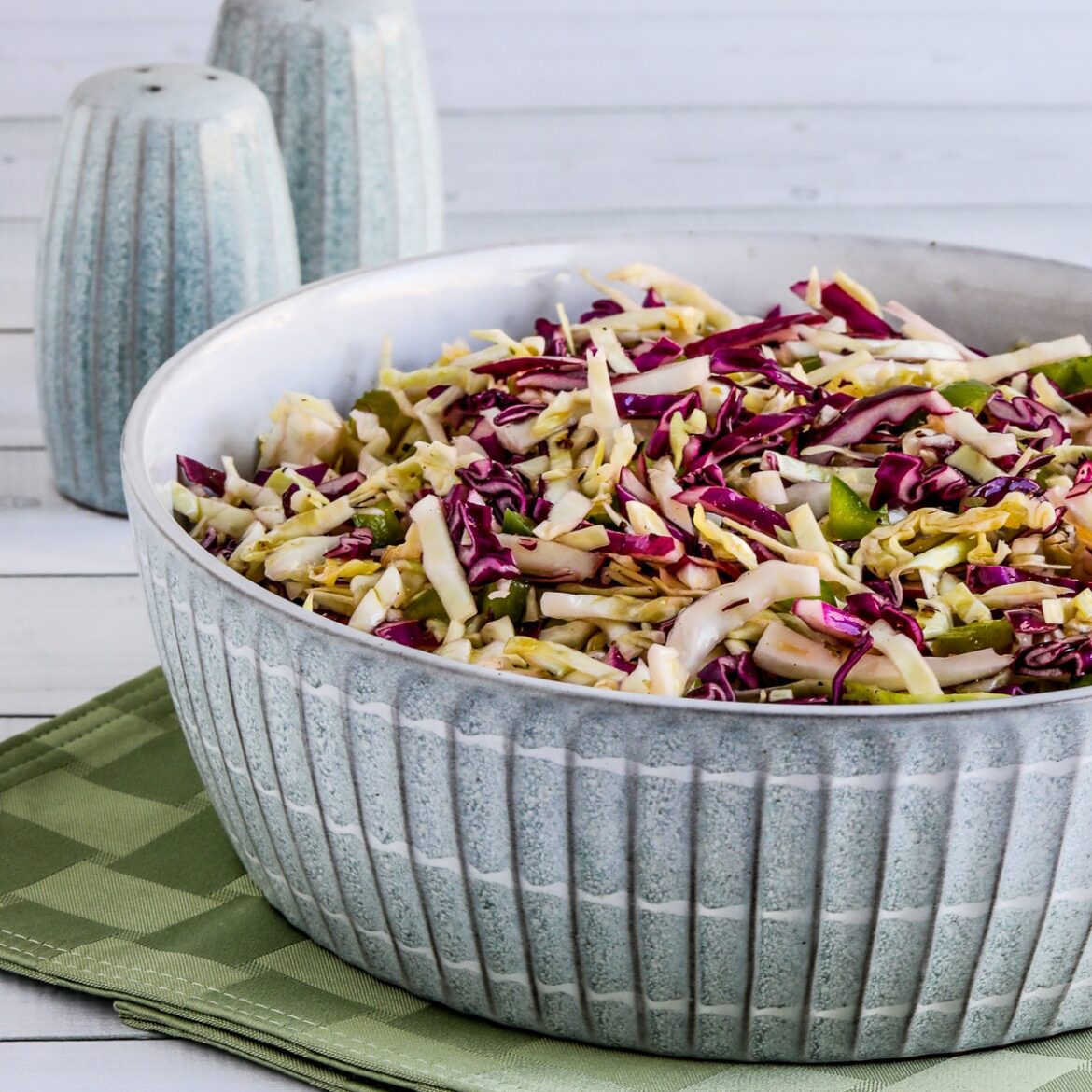 I loved the combination of olive oil, red wine vinegar, oregano, and green bell pepper that gives this recipe some Italian flavors. But many vinegar coleslaw recipes use apple cider vinegar or white vinegar, so take your choice on the type of vinegar you prefer.