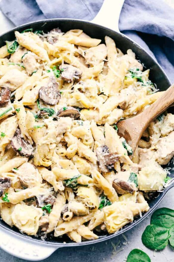 The creaminess + the spinach + artichokes + mushrooms + freshly grated parmesan is a recipe for success. We all loved it so much that I know you are going to love this one too! It is sure to become a favorite in your family.