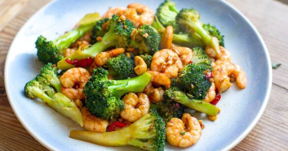 This quick and easy prawn stir-fry comes with crunchy and nutritious broccoli and cashew nuts, and a touch of chilli. It’s a quick and easy dinner (under 20 minutes) and super tasty. This recipe is paleo, gluten-free, Whole30 and keto-friendly.