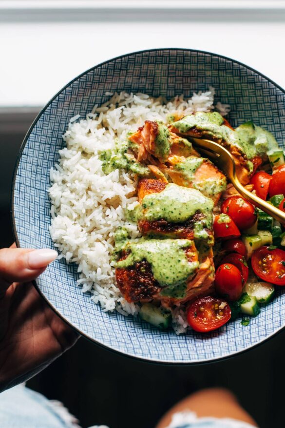 Related: If you love salmon, please don’t sleep on these two salmon recipes: Coconut Curry Salmon and BBQ Salmon with Mango Salsa! Oooeee! Both recipes that we make on repeat in our house.