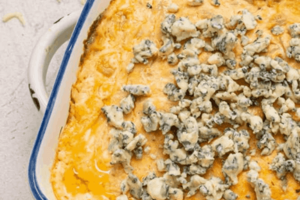 - Crumbled blue cheese or shredded mozzarella cheese: The crumbles of cheese in this dip are the best part!